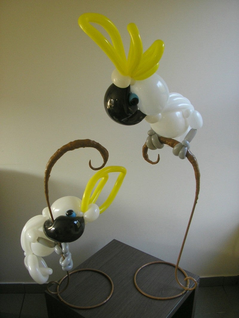 De snavels van de kaketoes werden gemaakt met een hartjes-ballon. Deze techniek is door Patrick ontworpen en is een revolutionair nieuw idee binnen de ballontwisters wereld. Menig collega heeft geprobeerd deze na te maken; slechts weinigen krijgen dit voor elkaar.